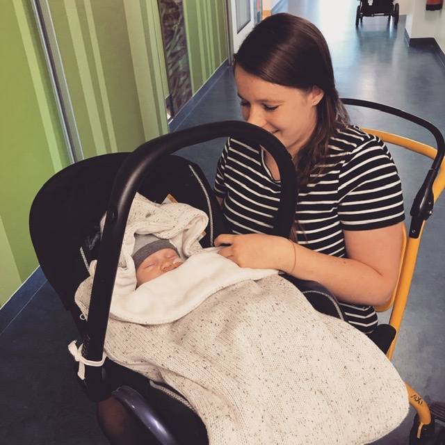 De kinderarts zei dat we naar huis mochten, maar wij wilden nog wachten op de uitslag van audioloog. De kinderarts zei dat we beter maar konden gaan, die uitslag zou waarschijnlijk pas morgen komen, want het was nu al einde van de middag. Waarschijnlijk ging hij uit van zijn eigen werkwijze. Iets beloven en puntje bij paaltje toch niet nakomen. Maar goed, wij wilden natuurlijk niets liever dan NAAR HUIS! Dus hup, we gingen maar gewoon. Eindelijk was ik die trotse moeder die in de rolstoel, met maxi cosi op schoot, het ziekenhuis uitgereden werd door een nét zo trotse vader. De aygo afgeladen vol met spullen en het belangrijkste: we konden eindelijk met gevulde maxi cosi naar huis. Waar we drie weken geleden met lege maxi cosi naar het ziekenhuis vertrokken om die baby te gaan halen, eindigde deze rollercoaster hier en nu. Naar huis, met ons kleine hoopje geluk.
